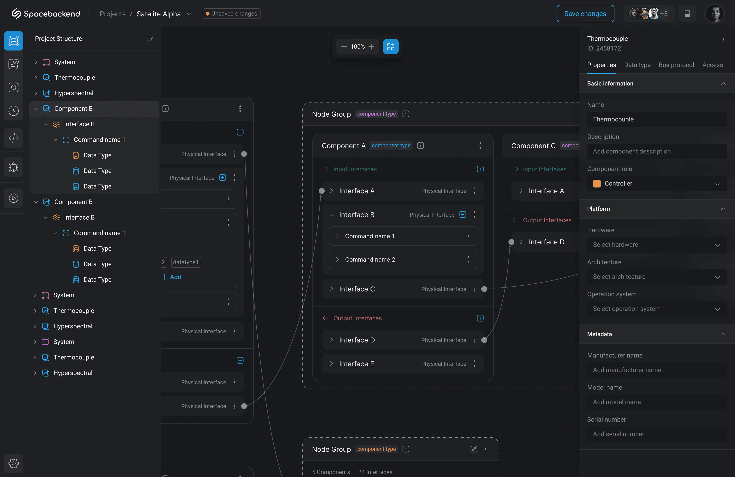 Multiple users work in the same project across components and integrations.